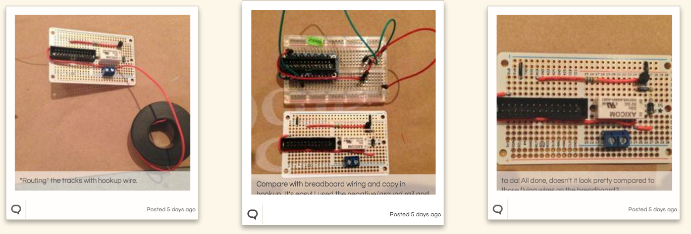 The relay board connects to the Raspberry Pi General Purpose I/O (GPIO) pins via a ribbon cable. Adafruit sells a Pi Cobbler which makes it easy to break out the GPIO pins on a breadboard for prototyping. Once you’re happy that the prototype is working, transferring a breadboard layout to the permaproto board is quite simple (the soldering is easy and you just copy what you had on the breadboard).